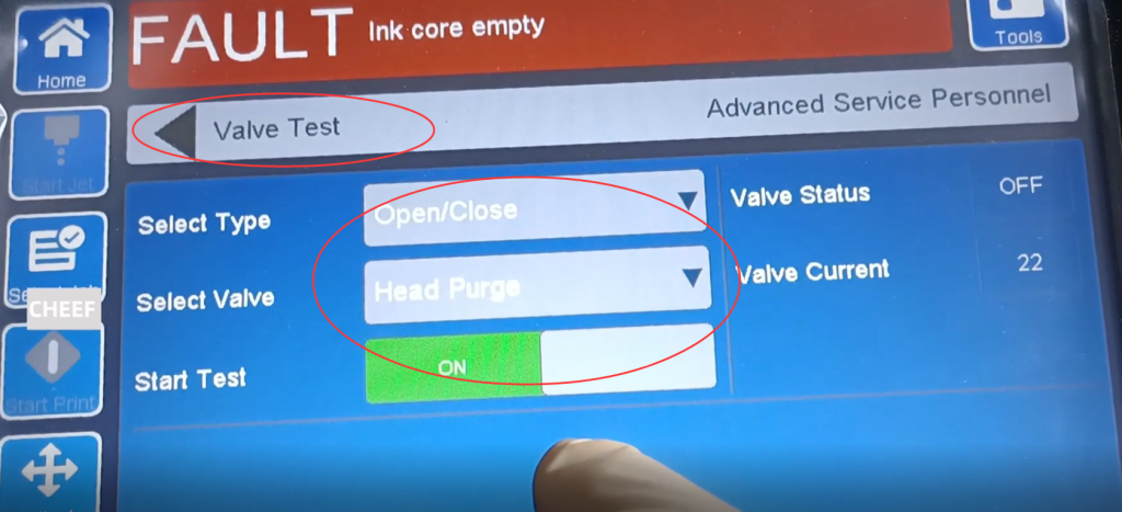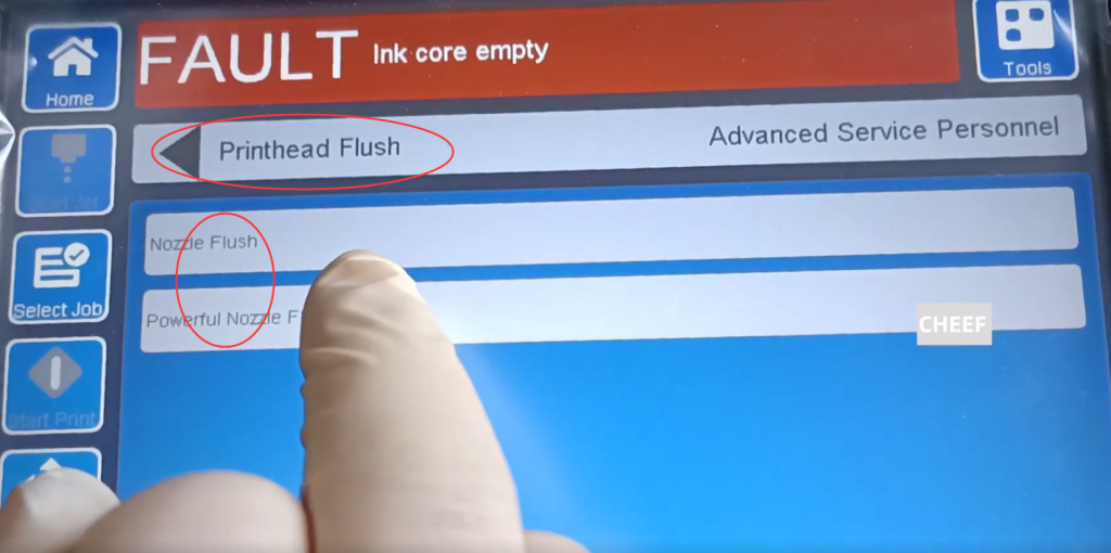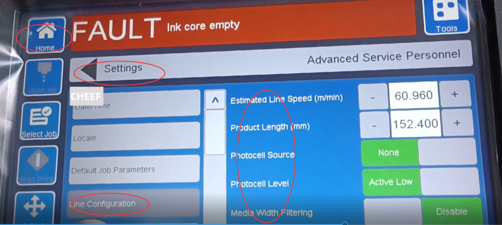 Вы можете выбрать автоматическую печать на боковой стороне сопла. Когда линия подачи чернил включена, она автоматически начнет печать. Его можно включить или выключить, либо выбрать информацию. После выбора информации она также автоматически распечатается.: