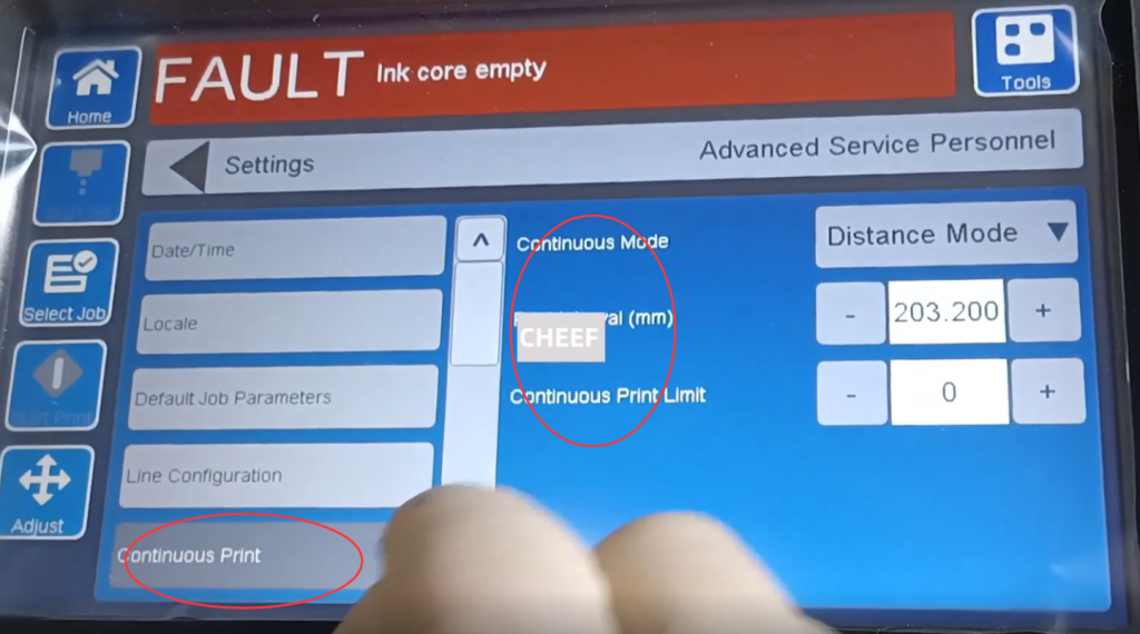 Далее идет непрерывная печать, есть временной режим, интервальный режим и режим кодировщика. Есть несколько режимов на выбор, и вы можете отключить непрерывную печать.: