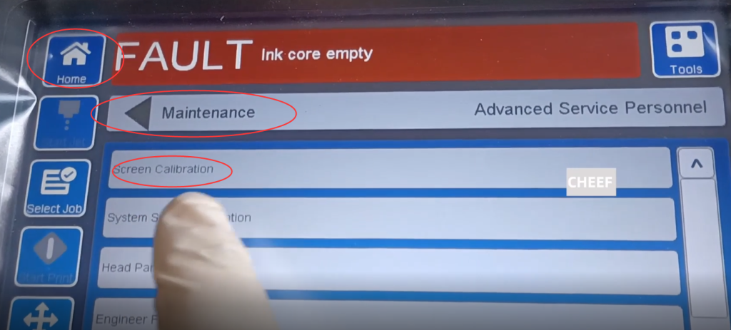 Это в настройках, не говоря уже о доступе, это настройка паролей и разрешений, а потом смотрите в обслуживании, в обслуживании есть калибровка экрана, когда тач экрана не чувствителен, нужно выполнить экран калибровка: