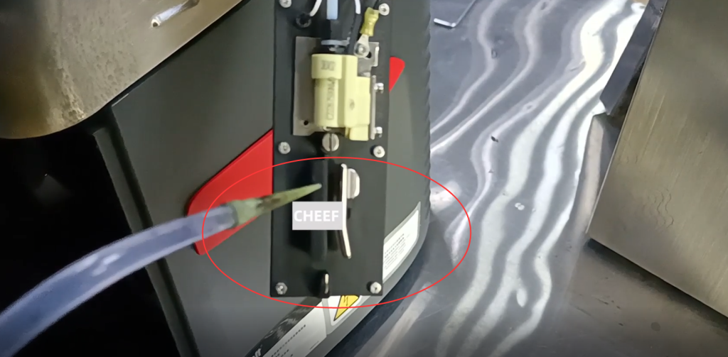 Затем отрегулируйте этот винт, чтобы отрегулировать левую и правую часть сопла, пока оно не окажется в правильном положении бака для утилизации: