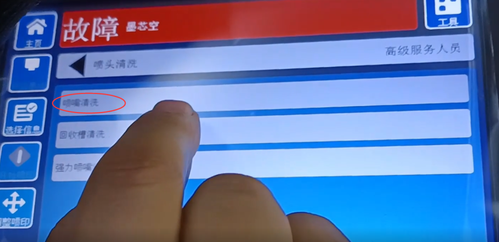 Потом в очистке дюз есть очистка дюз, нажимаем ее, занимает около 30 секунд: