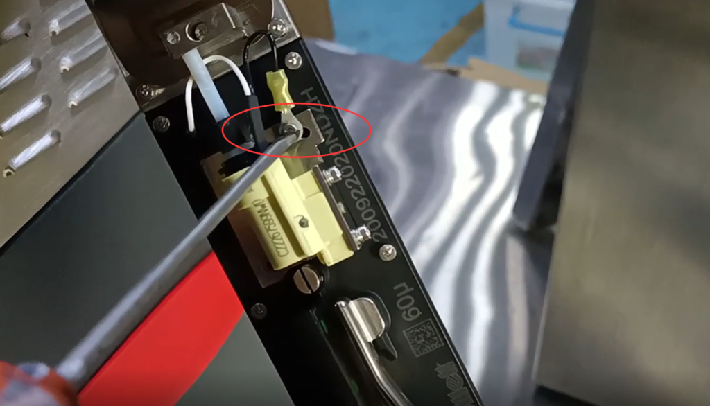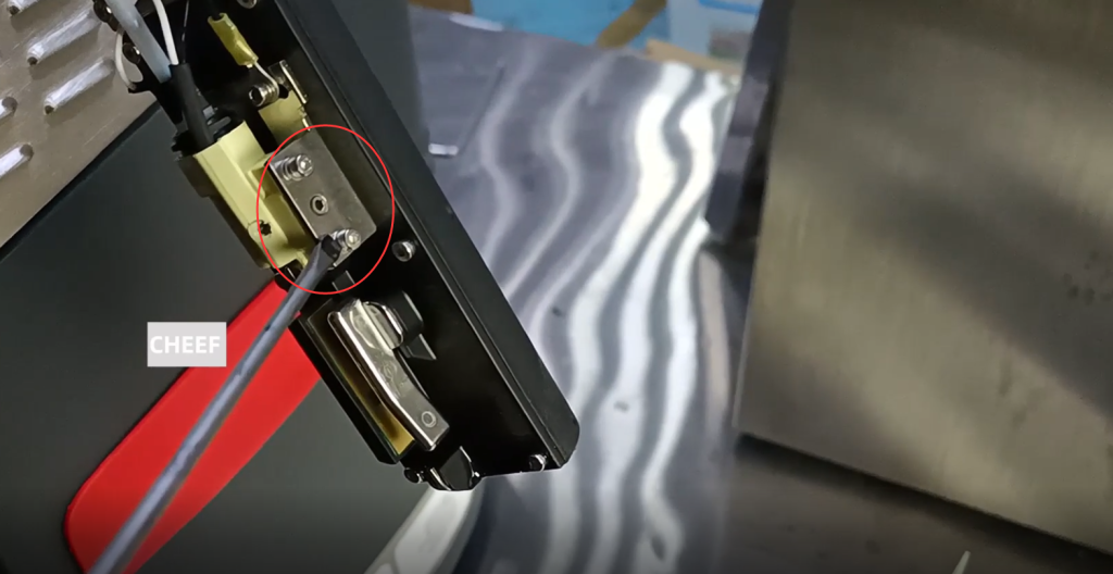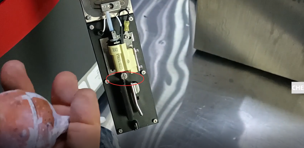 Винт ослаблен, в результате чего чернильная линия смещается и не попадает в резервуар для отходов. В этом случае вам необходимо отрегулировать левую и правую, переднюю и заднюю часть чернильной линии, регулируя этот винт, и ослабить этот винт, чтобы отрегулировать ее переднюю и заднюю часть: