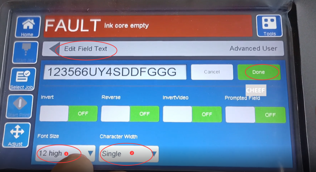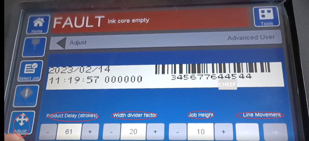 Посмотрите настройки, здесь вы можете выбрать решетку, здесь вы можете установить размер текстового поля, здесь вы можете выбрать направление сообщения, перевернуть или перевернуть, вы можете включить или выключить его, вы также можете настроить повторение растра. , если выбрать дважды, то каждый раз при активации фотоэлектрического датчика он будет печатать два раза подряд, а здесь и ширина сообщения, и высота сообщения, максимальная высота 10, Длина, высота, ширину можно отрегулировать здесь, это регулировка или в упор, а затем напрямую ввести значение, вот задержка печати, отрегулировать здесь, также можно ввести напрямую, или нажать знак плюс или минус, чтобы увеличить или уменьшить, это интервал между символами после выбора ОК: