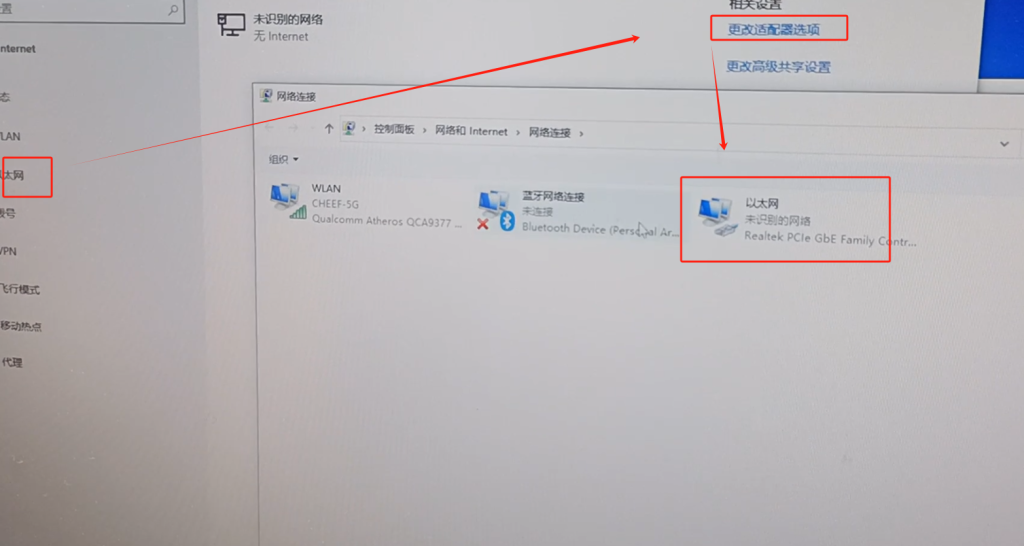 بعد أن وضعنا هذا ، ونحن سوف إعادة تعيين جهاز الكمبيوتر لدينا . إذا كان جهاز الكمبيوتر الخاص بك ، ونحن اختيار إيثرنت ، اختر تغيير محول الخيار ، ثم هناك إيثرنت .