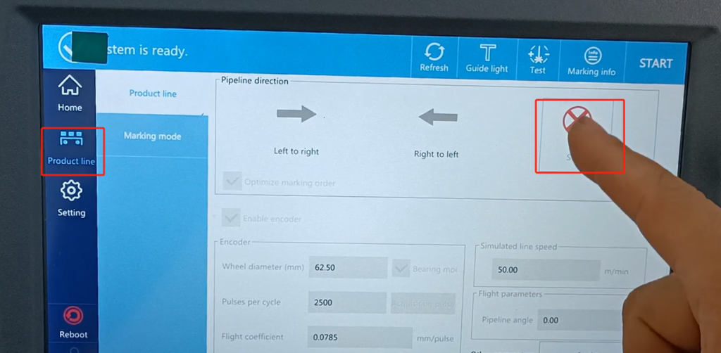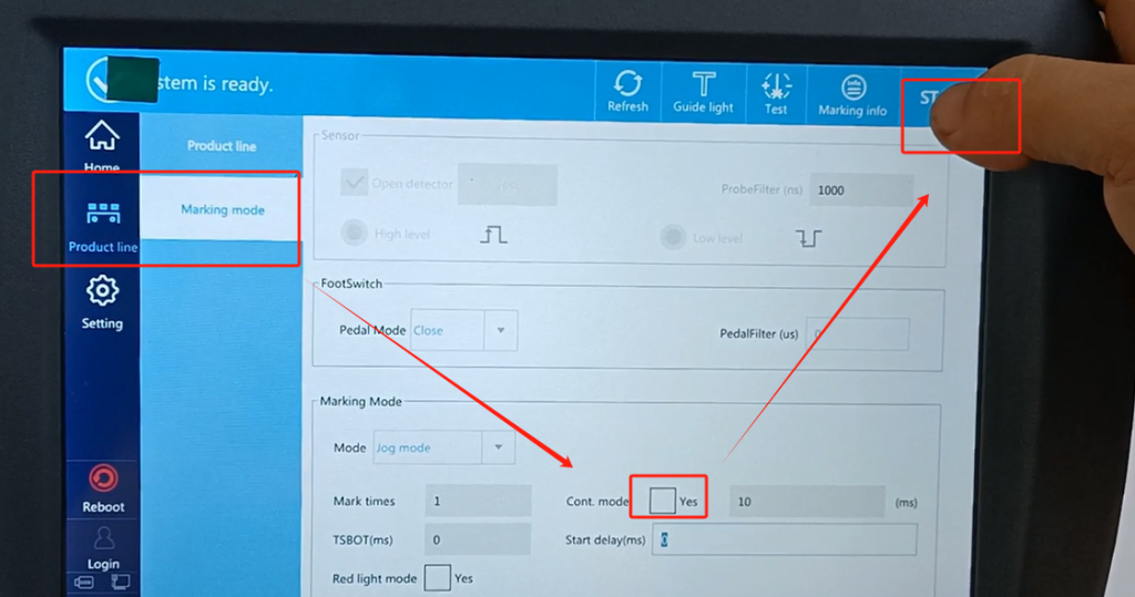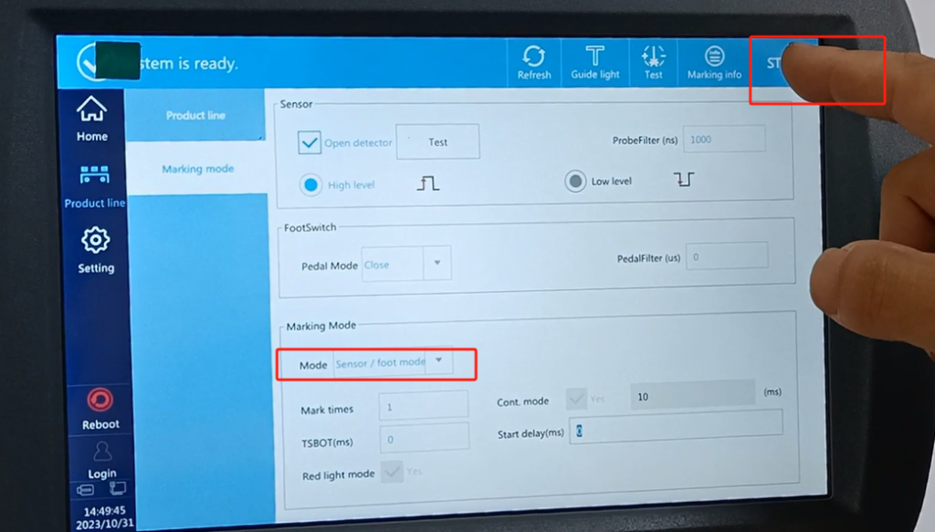 This static printing, here can choose whether the photoelectric trigger, or click mode. The click mode has to be triggered directly by our hand.