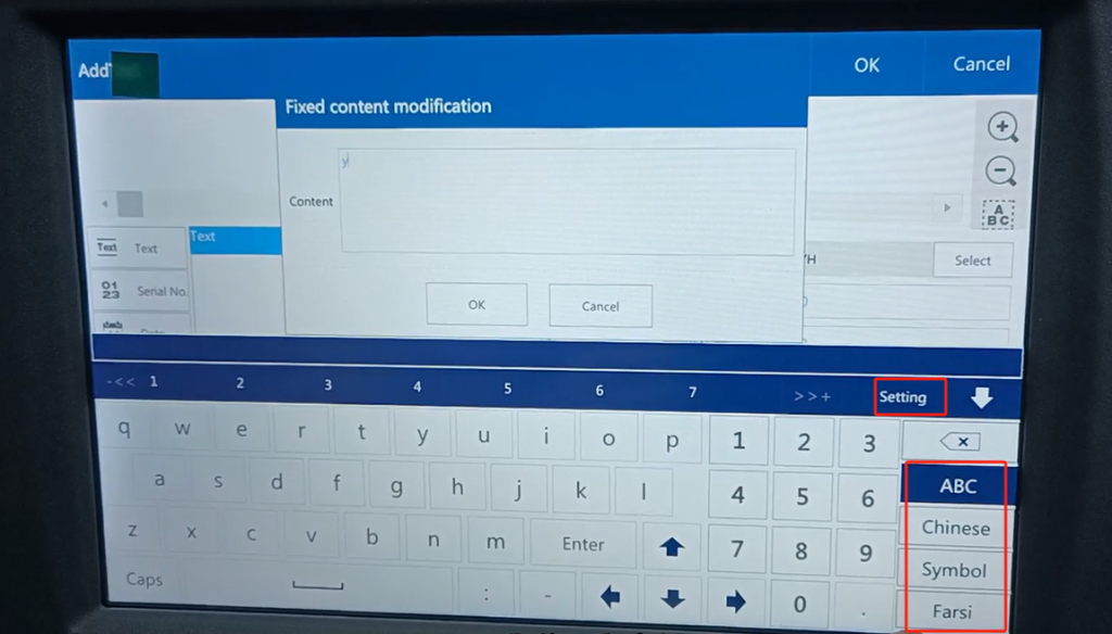 Let’s look at CFB 2 its keyboard input methods? Let’s build up a random message. Let’s see that here we now have 1234, four input methods. Then we have a setup right here. We point the set up.