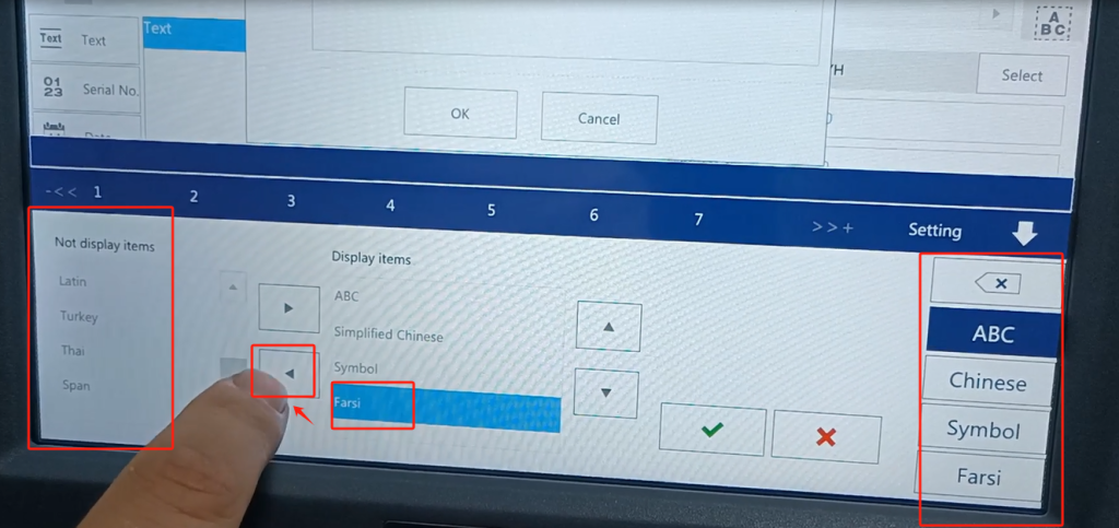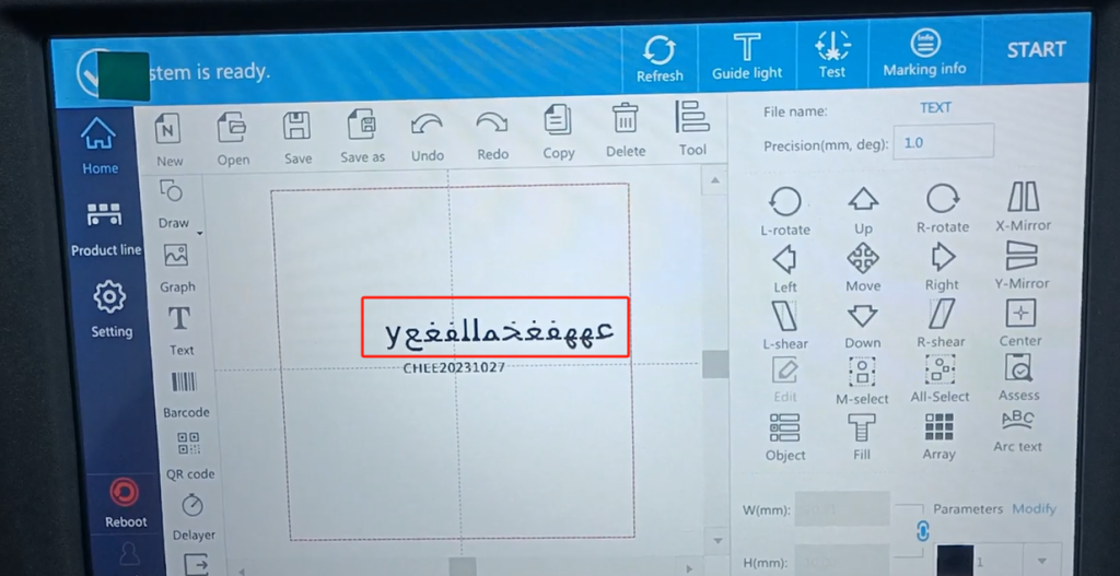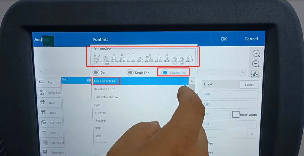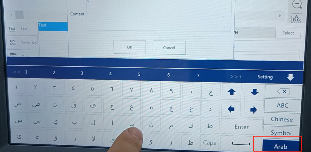 We single line mode, font may not support. We want to find a supported language, a supported font. You see, we input Arabic font, and after the input is good, we click sure. After confirming, you see his side does not show, not here, that we side this font, we now default this font is not supported.