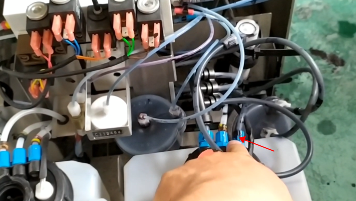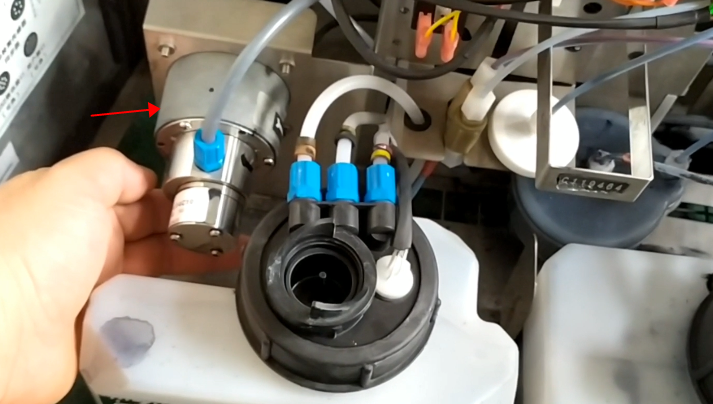 First of all, the ink should come from the pipe on this side of the main ink tank: