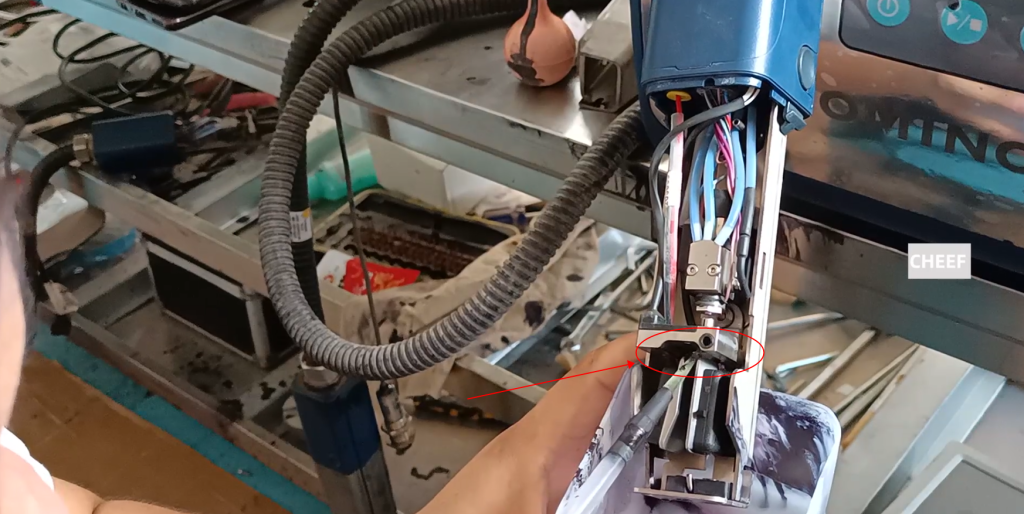 When the ink line is biased and needs to be adjusted, it can be divided into front and rear and left and right. Whether it is to adjust left and right or front and rear, be sure to loosen this screw first: