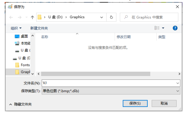 8. Save the created pattern as a monochrome bitmap (. The bmp) file, and put it in the Graphics folder in the U disk.