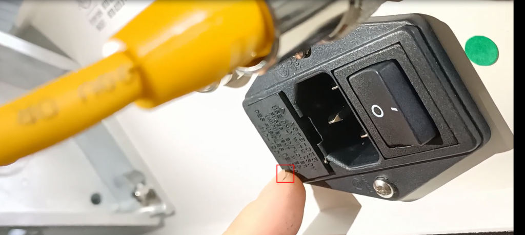 In this case, let’s use this arrow and then look at this arrow. Our arrow poins to this, which means that 110-120120 volts can be switched to 110-120 volts.