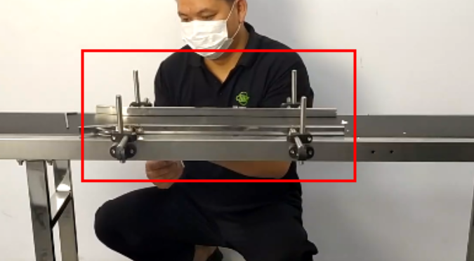 Then tighten the screws:Attach the bracket to the conveyor belt and tighten the screws used to secure the bracket:Insert the pole in, adjust the position, and tighten the screws used to fix it:Then install the pole on the other side and tighten the screws: