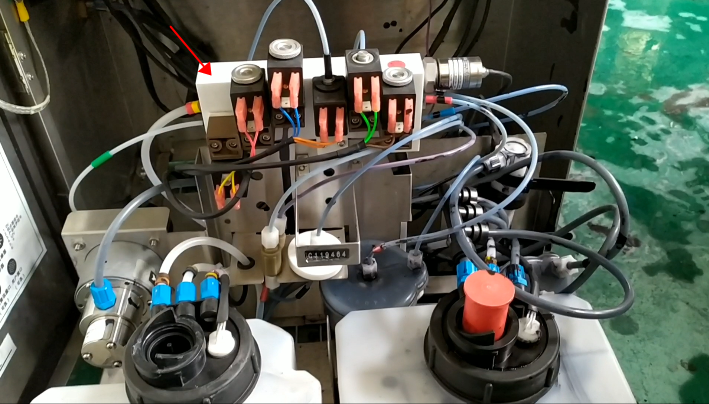 This is the ink diversion block. Solenoid valve and pipe have been inserted on it: