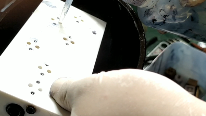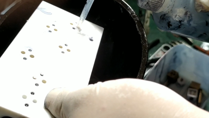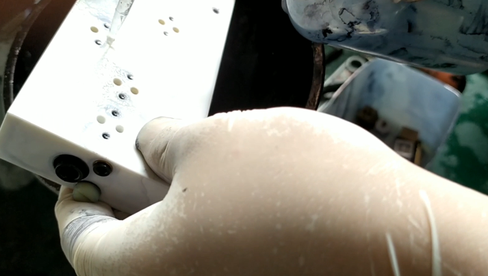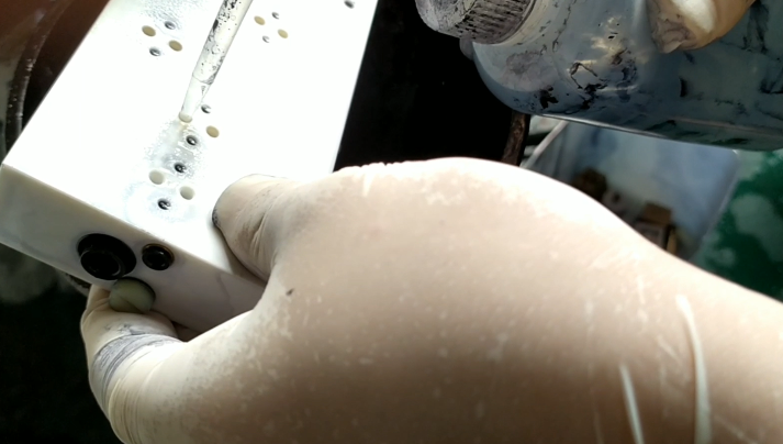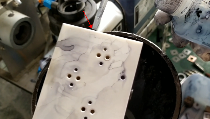 Now the white module has been soaked for about one or two days, and then we install it now. We use the cleaning pot to check whether each hole is unobstructed: