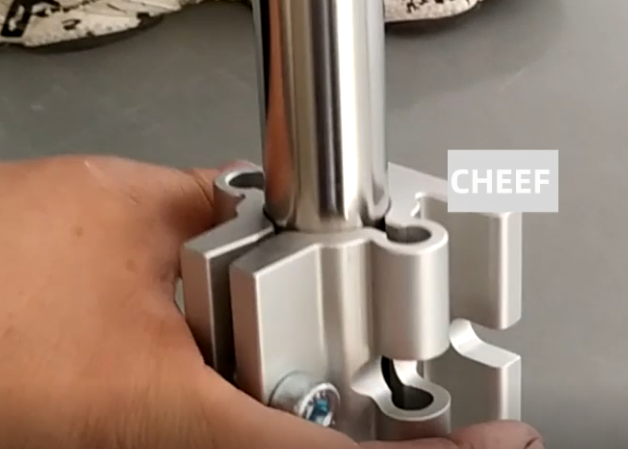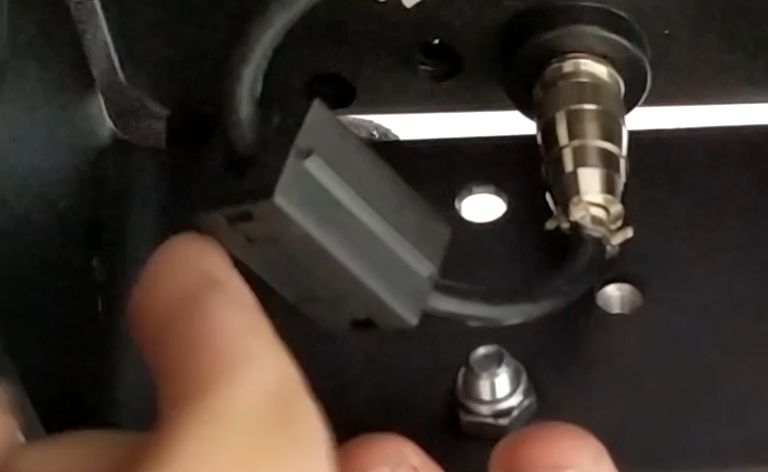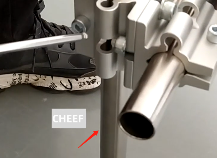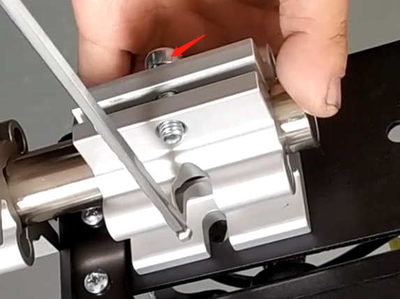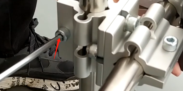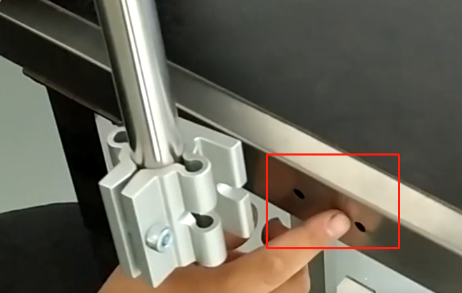 Then put this bracket cylinder through and tighten the screwsAfter tightening, there is an adapter block here, which is a whole, the overall adapter block, and then put the bracket cylinder into itAfter the sleeve is in, tighten the screwAfter the screw is tightened, put the stainless steel cylinder below into this side and tighten the screwAfter tightening, there is a fixing block fixed on the conveyor belt below. After putting it on, tighten the screw. After tightening, the bracket is assembledDrill holes here. After fixing the bracket, install screws on both sides and tighten them. Then fix it on the conveyor belt, or fix it on a matching equipment we want to print on the shelfAfter the rack is ready, the electric eye recognizer can be inserted hereThen, unplug this, replace the ink cartridge, plug this thing in again, and then you can power on and test