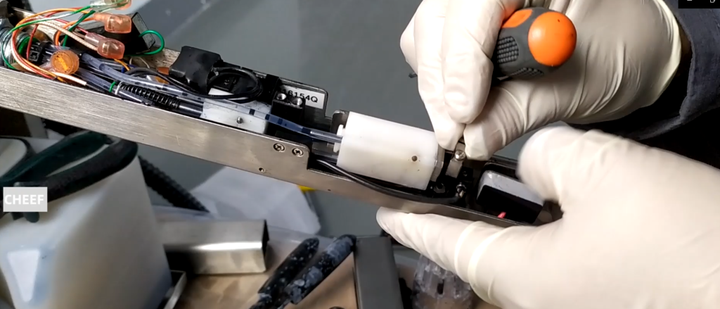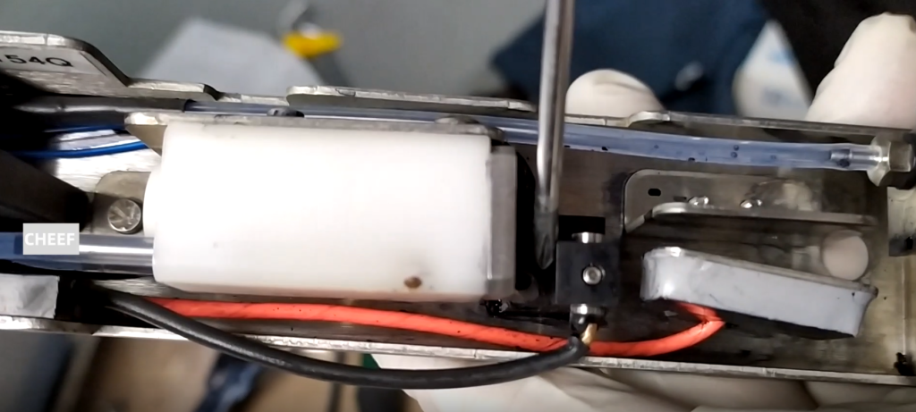 If our charging tank is removed, there is only a screw on it, and then we directly loosen the screw, and then pull it out, and this one comes out.