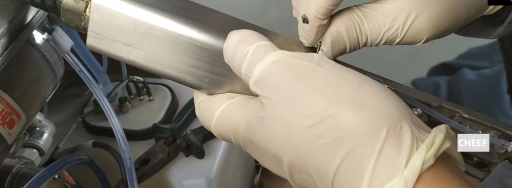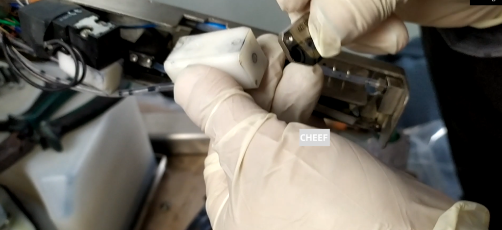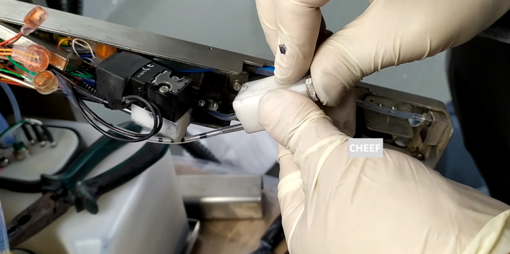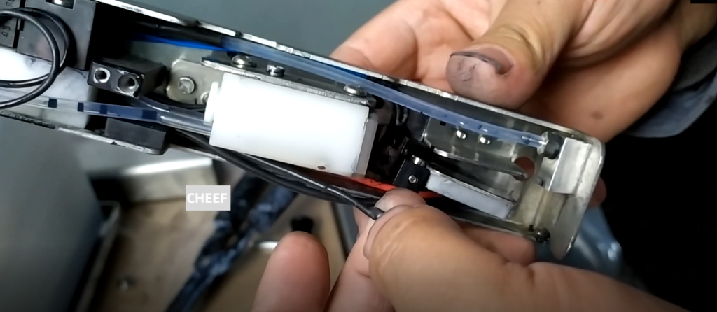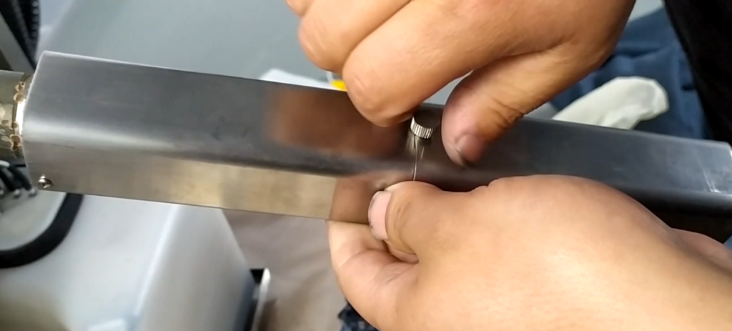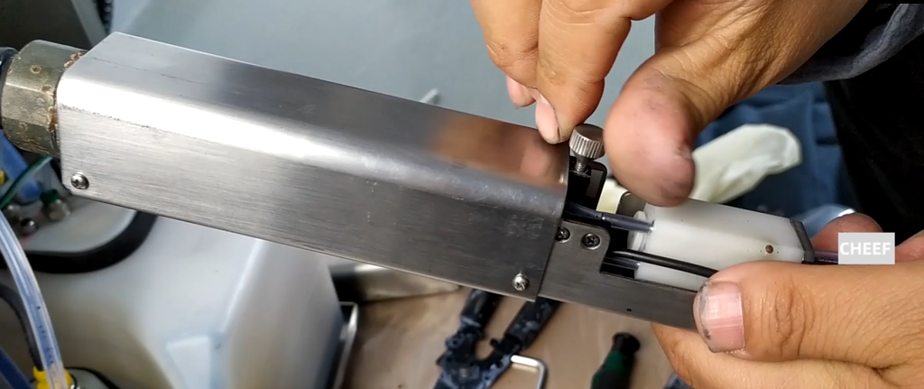 This nozzle can be taken off, and then we pull it out. If the nozzle is blocked, we can put it in the ultrasound, and we can install it after it.