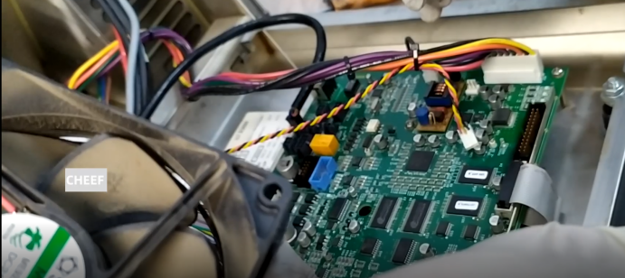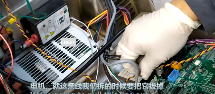 The fan has been removed. If it needs to be replaced, we will unplug the cable on the motherboard here. Then if you wear it, you can just pull it off and replace it with a new one.