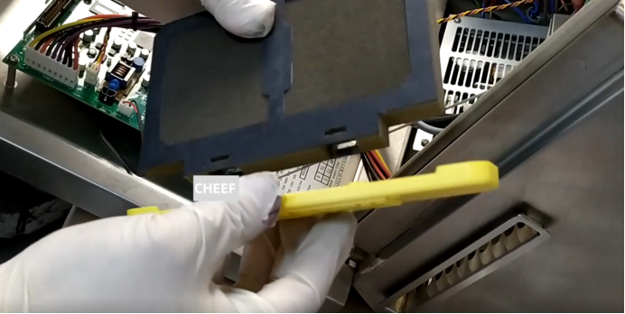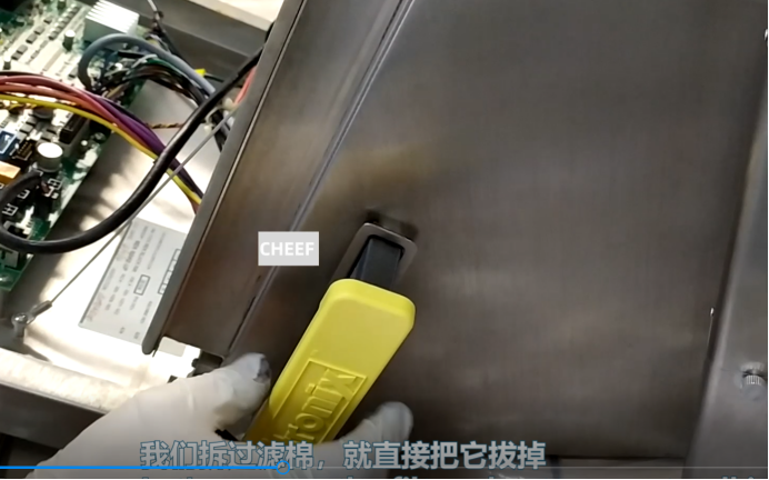 Then we change the filter cotton. Installation, directly installed in, directly a card on the line.