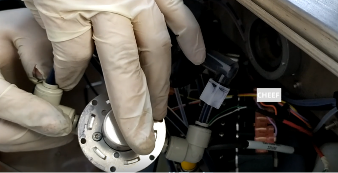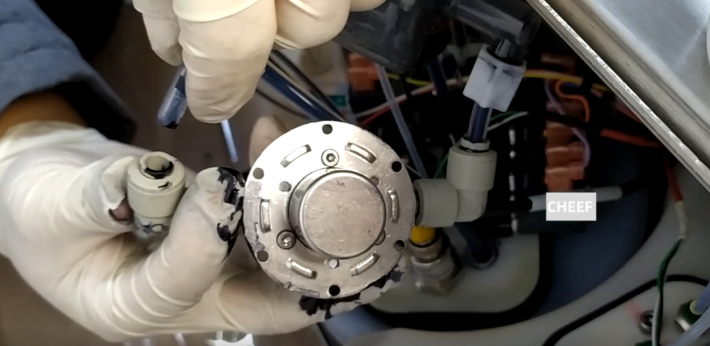 If we want to remove the motor and pump together, there are screws attached to the top of the motor screws, we have to remove three screws.
