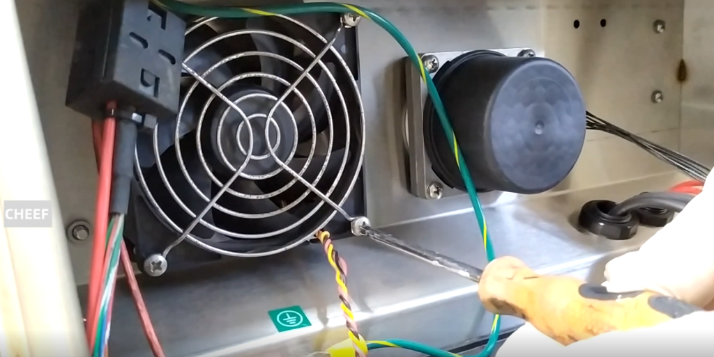 Let’s take a look at how the fan is removed. There are four screws on the fan. Let’s remove the four screws.