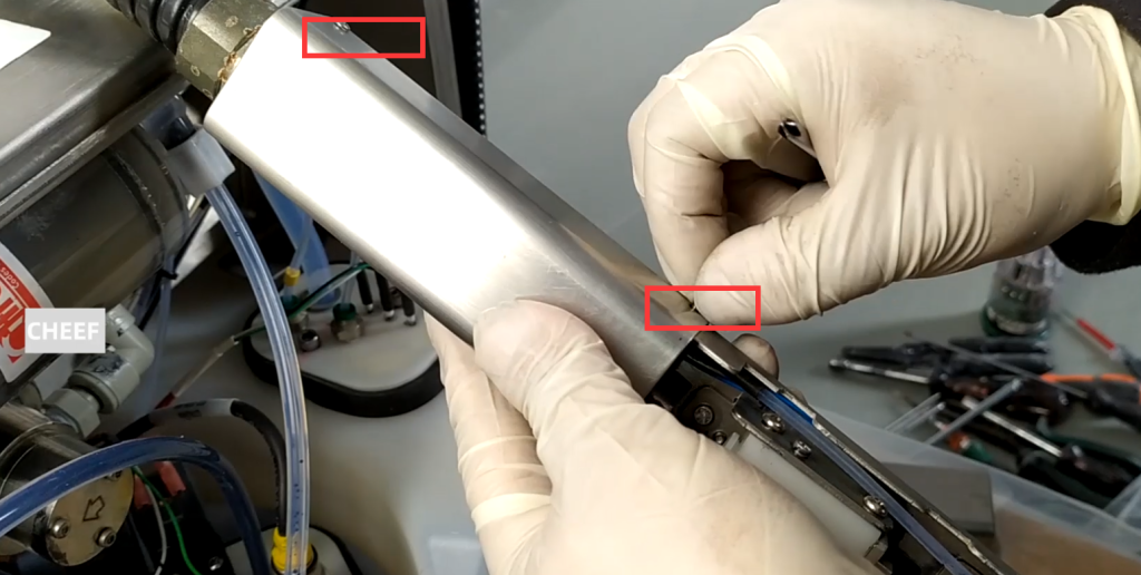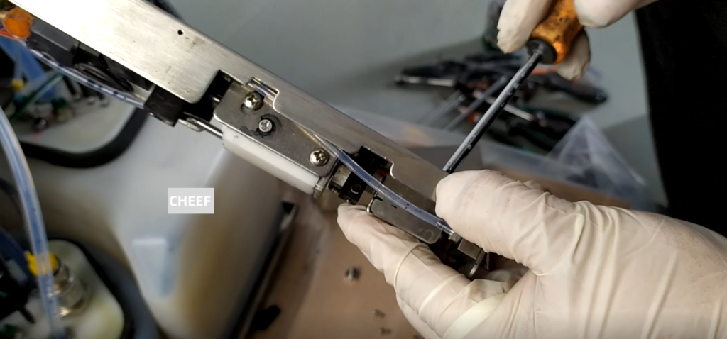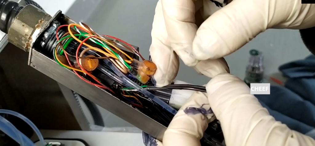 Then this line of our high pressure deflector board, if this line of the high pressure deflection plate breaks from here, our line has to be cut from here. After we cut it, we remove it and weld it with a new one. Then heat lock it with a heat lock tube. It can only be welded on, it can only be welded on.