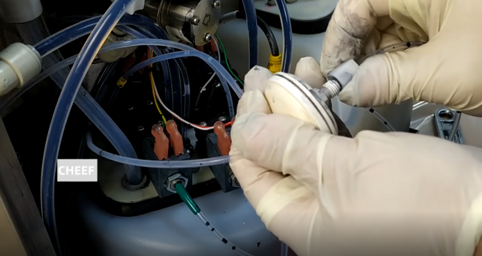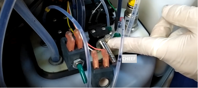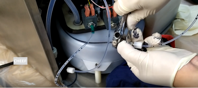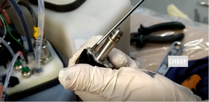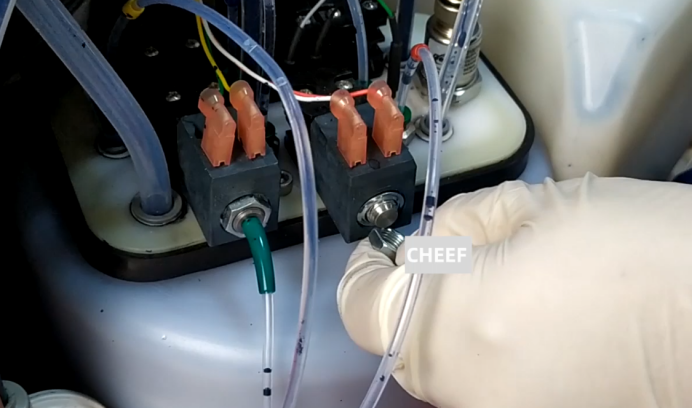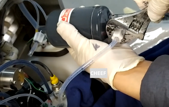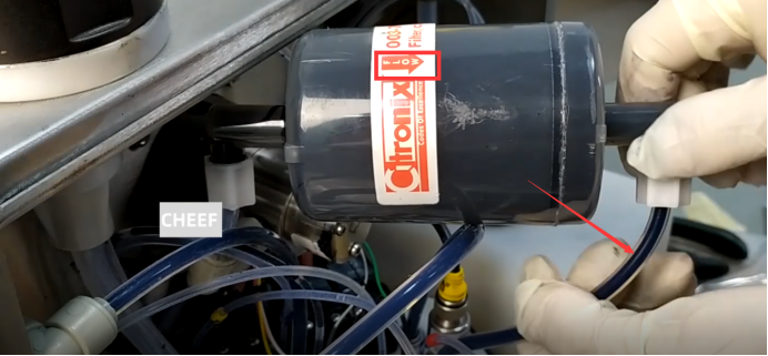 This black one is the solvent filter, and when we remove the solvent filter, we just remove the two ends, Very simple, with no direction.