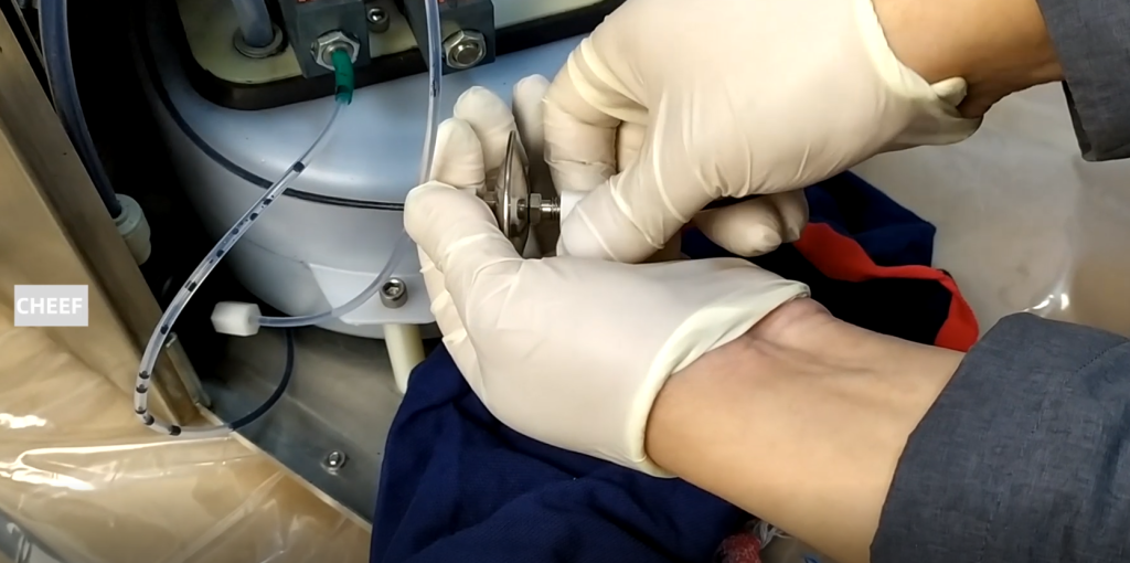 Then this white one is the recovery filter, connected to the recovery valve. Recycle the filter, we just remove it and screw it off.