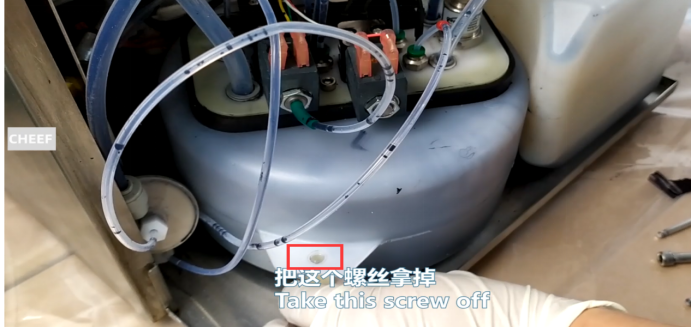 After the screw is removed, there is a thick pipe under it, go out by hand, and the lid will fall off.