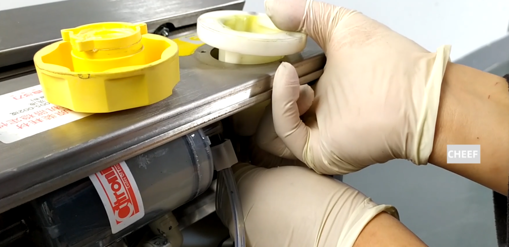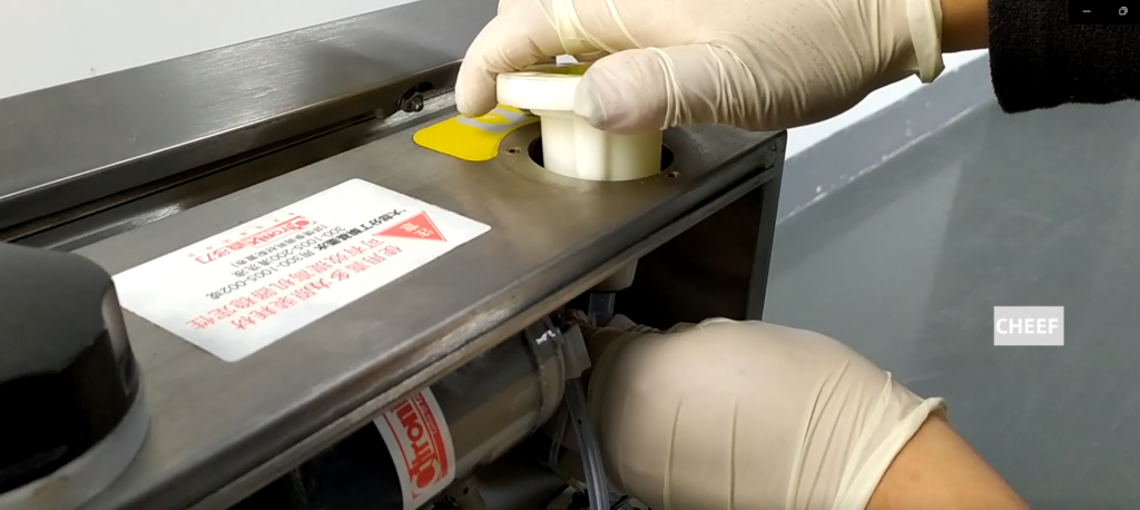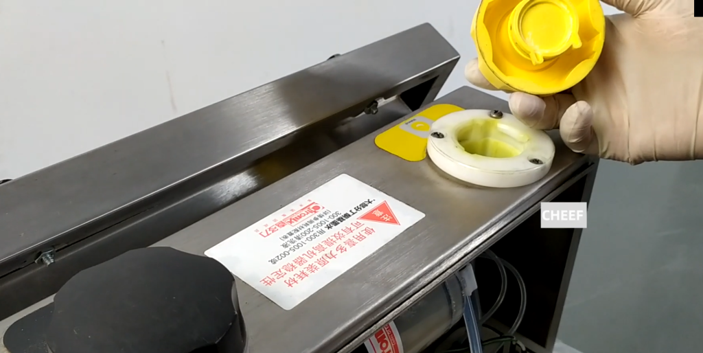 These two are the solvent injection lid and the ink injection lid, let’s remove a solvent injection cap, they are the same. This is the solvent injection cover assembly, and this is a set of. Then we see how to remove, the lid is a spin off.