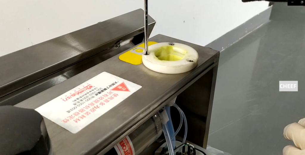 This viscometer, if we remove the viscometer, we just need to remove the pipe, and the pipe below it. Once removed, spin off the four screws above the viscosity gauge, and two of the bottom two. If we spin it off, we can remove the viscosity meter.