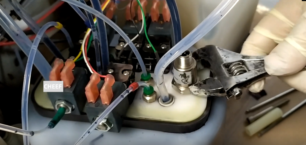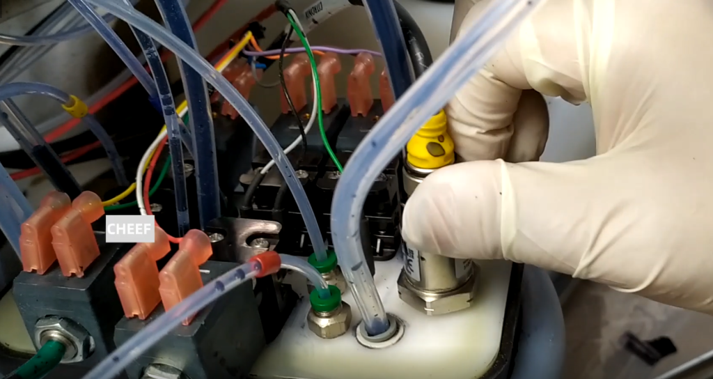 When we remove the pressure sensor, we first have to spin off the above line.