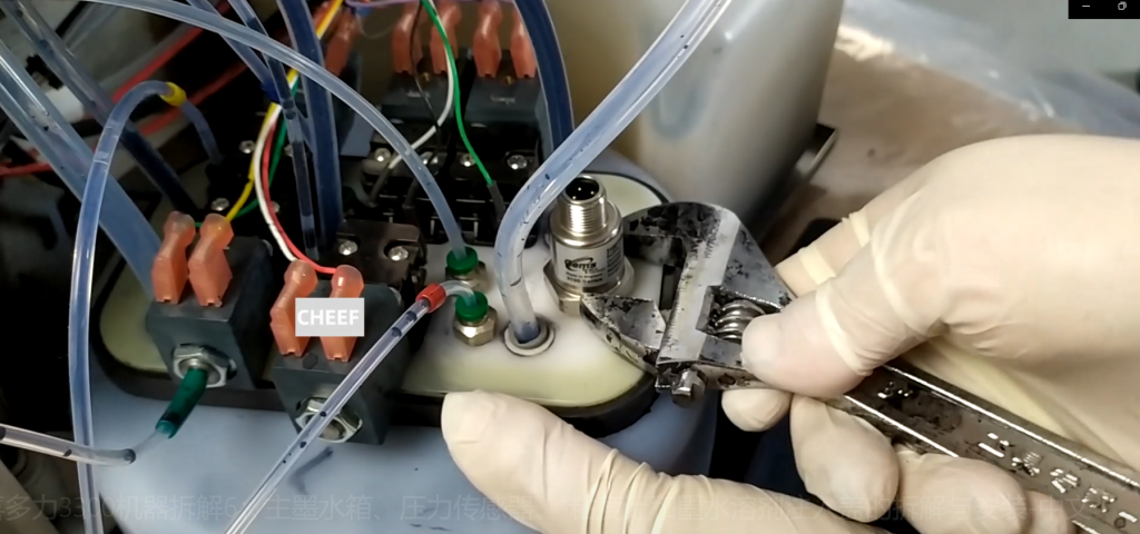 Let’s look at if the main ink box is removed, sometimes, our valve here we are not easy to remove.