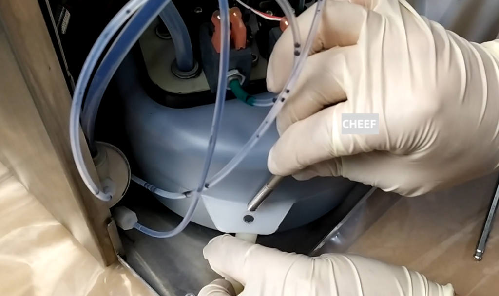 If we want to get it outside, we will have to remove the screw. Then we can lift the machine up to take it out. In this way, we can dismantle which one that we want.