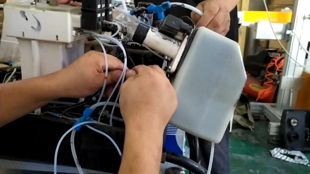 Take this thing down again:Remove these wires:Remove the screws:Take out the keyboard:Remove these four screws and the display can be removed: Remove the mainboard and remove these wires first: Pull out all the cables below:Ink remover control board:When the power cord is disconnected, the ink machine control board is unplugged:Split the flow plate again:Then remove the power supply: Remove these wires:Then remove the high-voltage package and remove the high-voltage cable: Loosen the two screws of the fan: Tear off these rubber bands:Remove these two screws:Remove the screws of the main ink tank and the main solvent tank:Unplug this cable:Remove the screw, the ink, and the thread:Unplug this pipe:These rear pipes should be removed. If it is difficult to remove them, they can be cut off with a knife:We pulled out the line under the pipe and removed the three screws:Take the wire apart:Pump removal:This pipe was also removed:Thread cutting:These lines are reserved:Remove this screw:Removal of cleaning pump:Fan sensor, sensor, cut off:Remove the fan sensor: