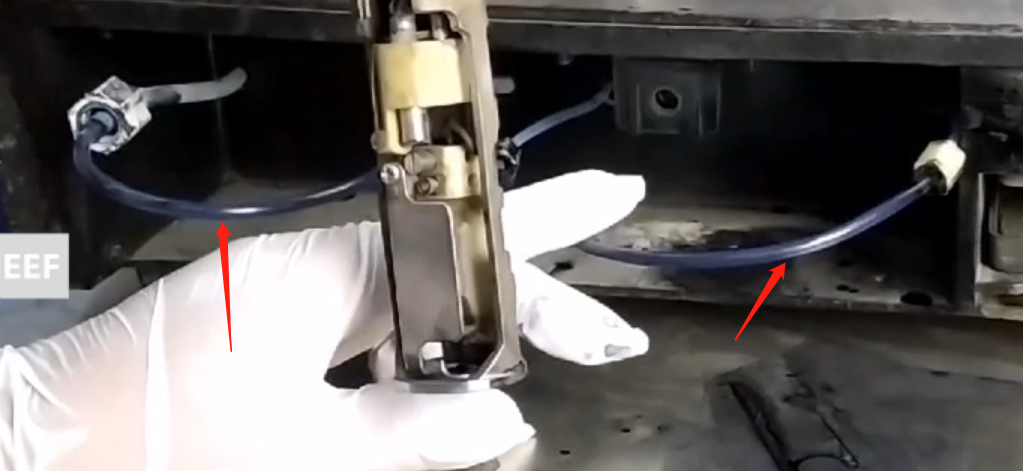 Use the waste liquid bucket to catch it, circulate it for about 20 minutes, and then discharge it. After that, add cleaning liquid, recycle it, and wash it twice