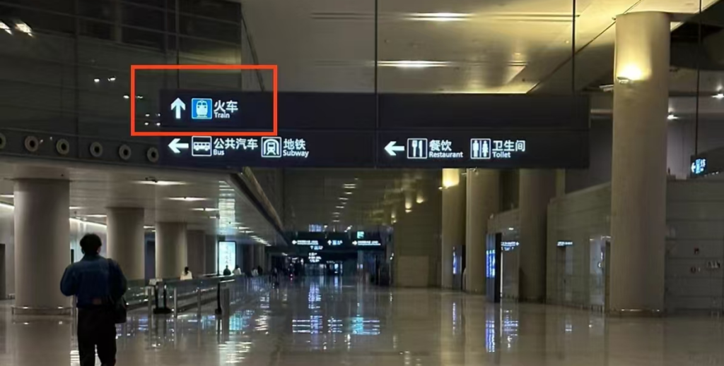 - See this train sign, go out, go to the railway station security checkpoint, go in, check in and take the high-speed rail to Suzhou North Railway Station