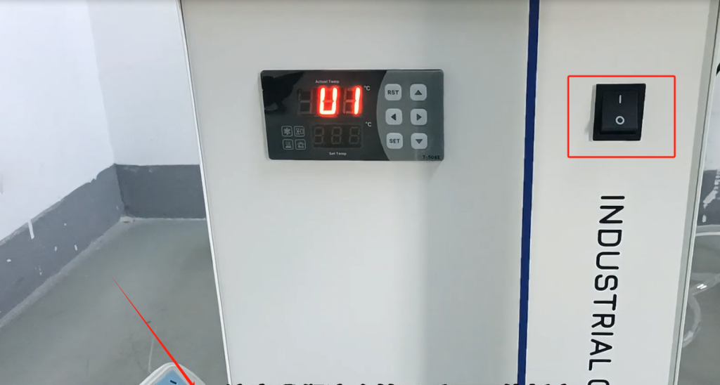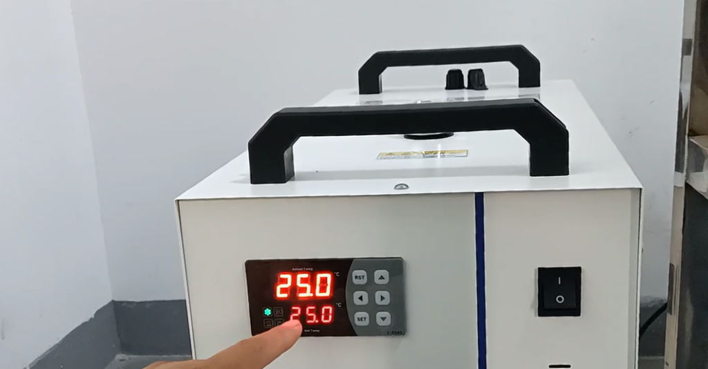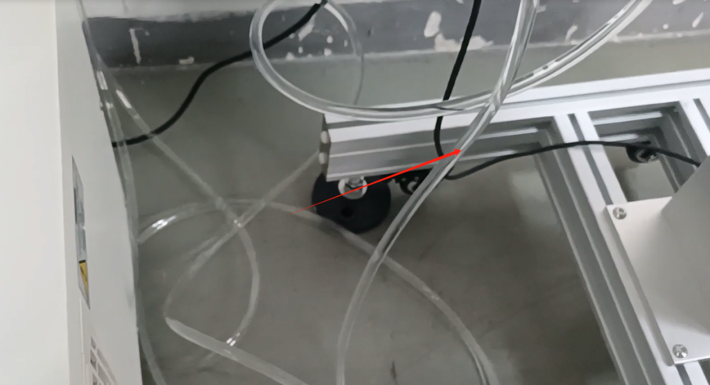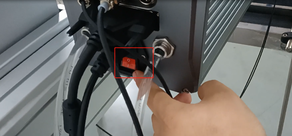 Let’s take a look at one of the startup steps of the CFB2 UV laser machine. First, open our water tank first, and open it first. We connected all the lines behind the power cord. After connecting it, then we can turn on the water-cooling switch.