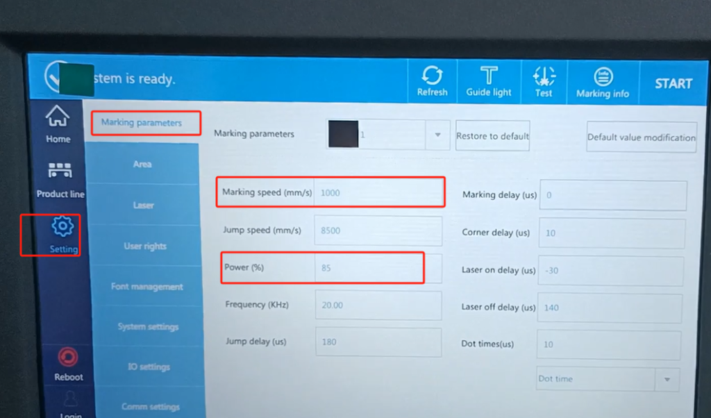 Then this side is set up. Let’s not move the setting here. The here is this speed and power.