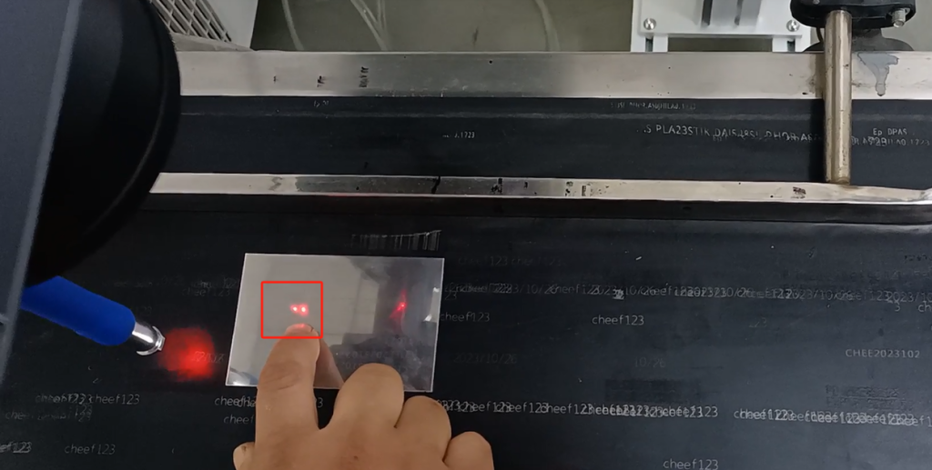 Let’s try out a product now. For example, if we want to print this iron piece, if we print this iron, we put it under our red light, and there are two points under this light. Two points indicate that he did not reach our best focal length.