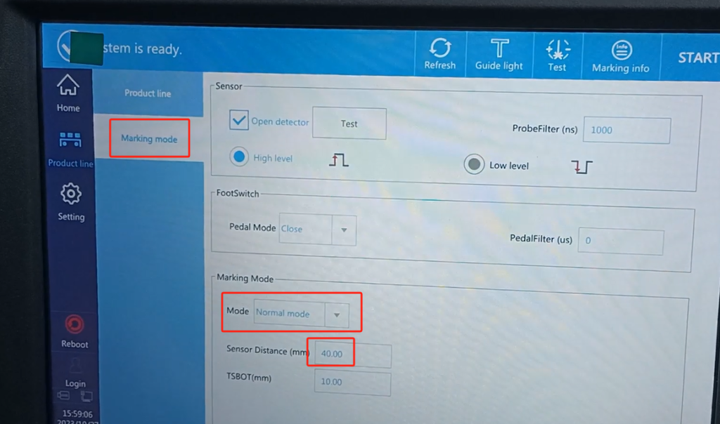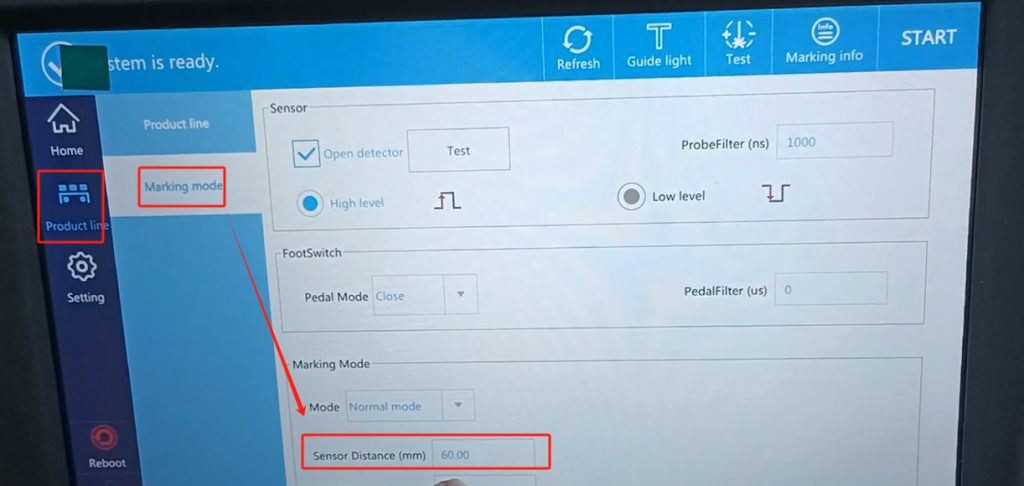 Then we look this way. What we can see is that one is a level, a high level. Then here is the pattern. We are single, just say one by one, the product one by one, then we have to use the ordinary mode can be. There is a value on the normal mode side, which is equivalent to a delay. That is to print to the right of the product, we can adjust one of its sizes, equivalent to a delay in its flight mode. And then this is his printing delay. Once we set it up, we can adjust the size according to the scene. We can change this, we can set it to 60, set it to be bigger. We can adjust it later and teach you how to adjust it.