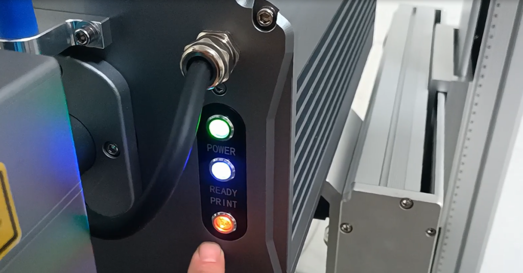 After our machine starts up, we have a main interface here. Let’s see the lights on our side. The lights on our side are on, and all three lights are on, indicating that our machine is ready. The power light, the print light are all green. We can print it out again.