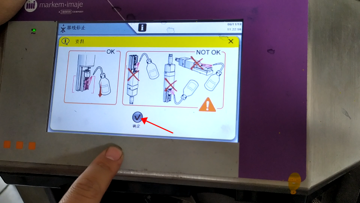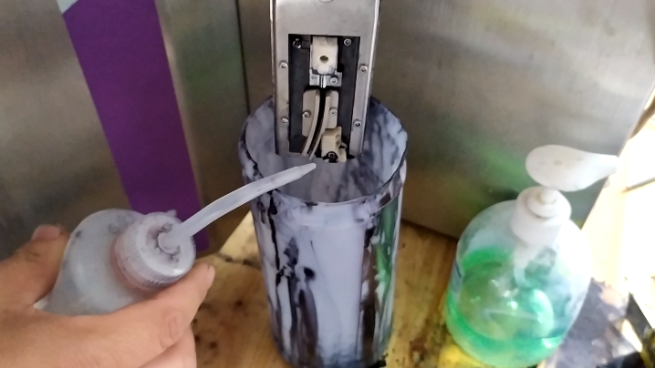 There’s a “nozzle maintenance operation” in the tool:Click “OK”:Then, there’s a “through nozzle” and “solvent suction”:If you click “Get through the nozzle”, the nozzle will always crack here:To see if the ink line is open, if the ink line is open to the recycling tank, you can click “Close ink line”:If you can’t get through the nozzle, we can click solvent inhalation:If you choose to inhale the solvent, spray the cleaning liquid into the nozzle with the cleaning liquid, let it suck in and suck the dirty things in:If the nozzle has not been opened, continue to open the nozzle, “Solvent suction” and “open nozzle” these two to cycle until the ink line is very stable:We can click on the “ink line stability check” to see the stability of the ink line, that is to say, hit the location of the recycling tank, whether jitter:Then after all is OK, we can click “close the ink line”, and then we wash this side of the nozzle, there are dirty places, we can clean it:For example, recycling tank, as long as there is dirty place, you can wash it clean.Then, after washing, be sure to blow dry.