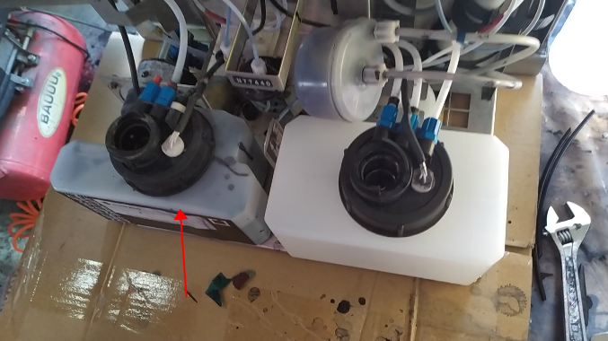 Be sure to exhaust the air the first time you use it. Put the ink and solvent in place and drain the filter for about 5 minutes.