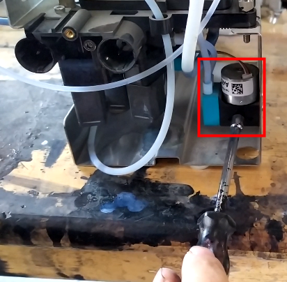 There are three screws here, which can be directly removed, and then the transfer pump will drop: