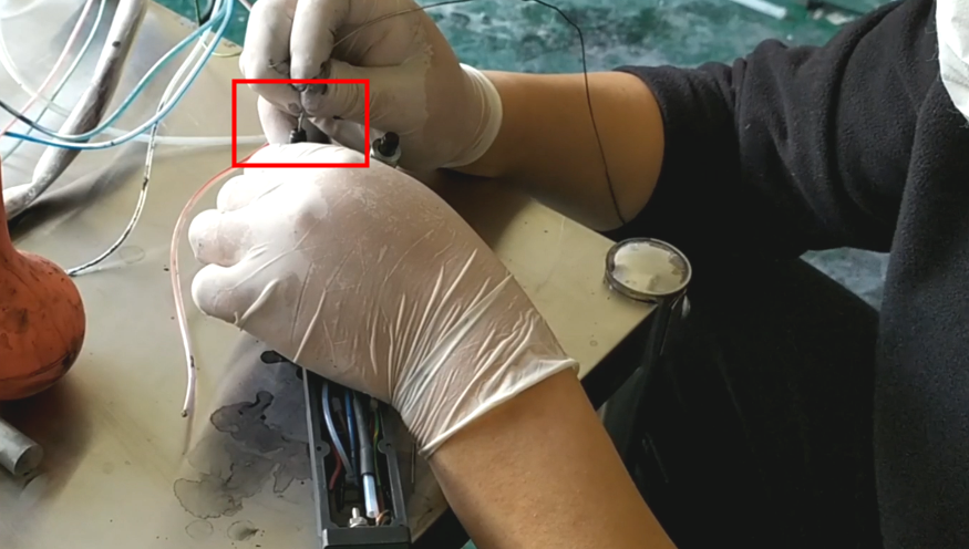Before dismantling, we can dismantle the solenoid valve. Before dismantling the solenoid valve, we must spray some cleaning fluid, and then pry it up:
