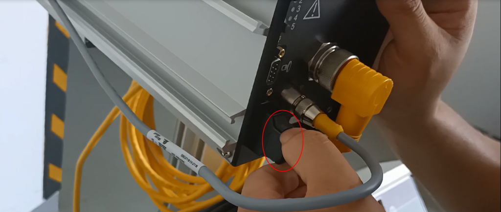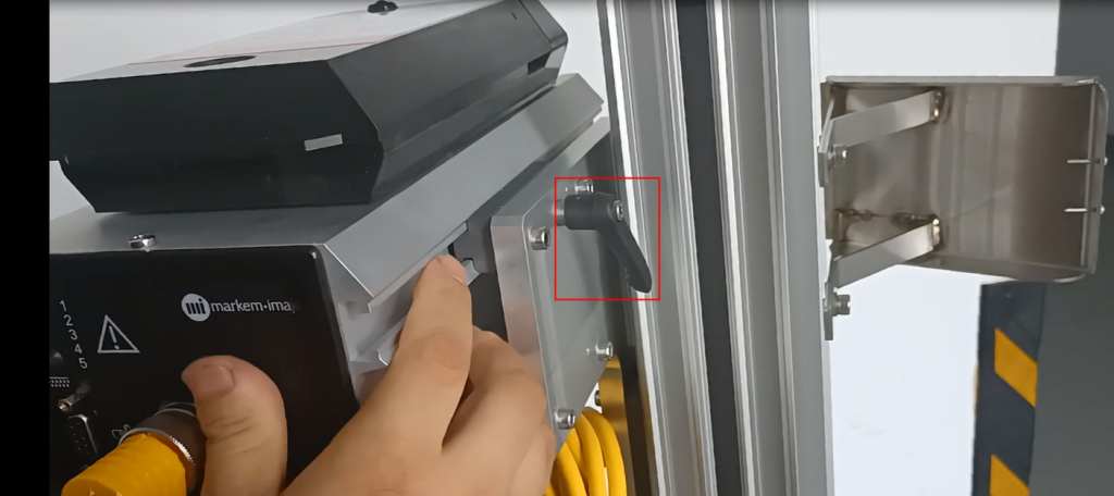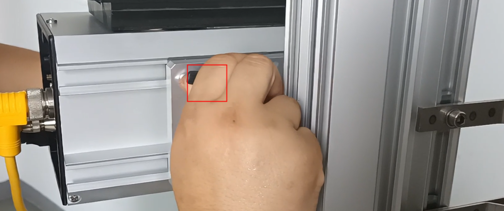 After loosening, we can slide in from this slot and lock the photoelectric device