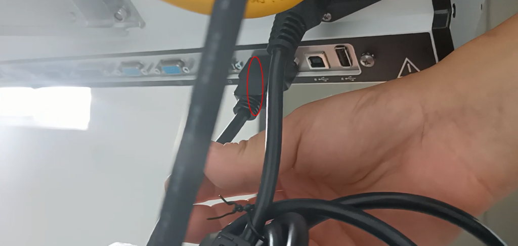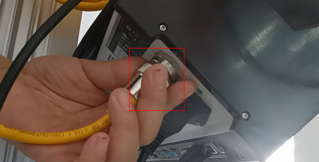 Then, if the cable is installed like this, our end is here, and the right angled end is inserted in this position
