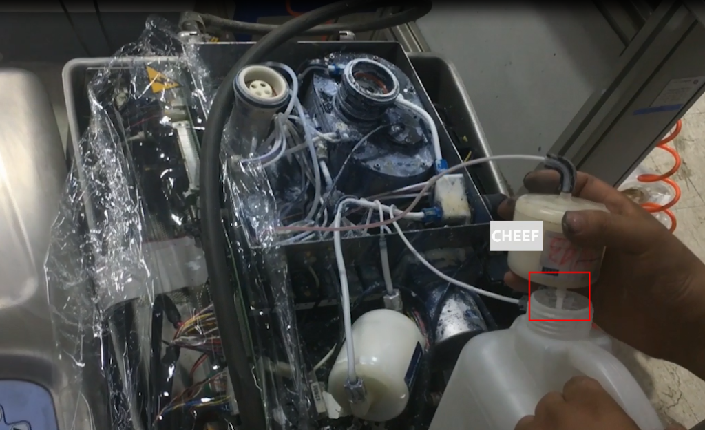 Then drain out the cleaning solution