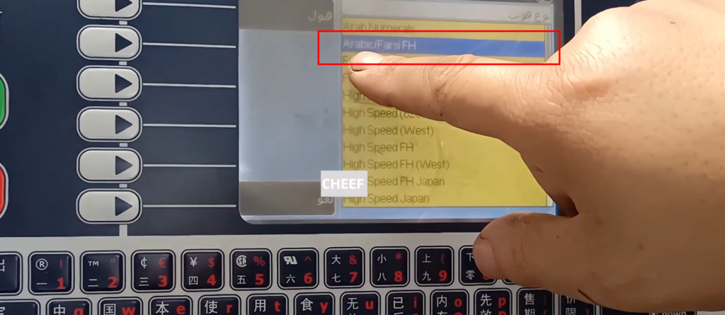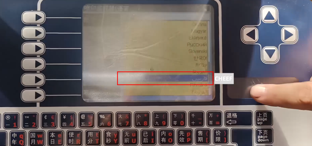 First switch the language to Arabic, select it in the menu, select the settings and then press to confirm: